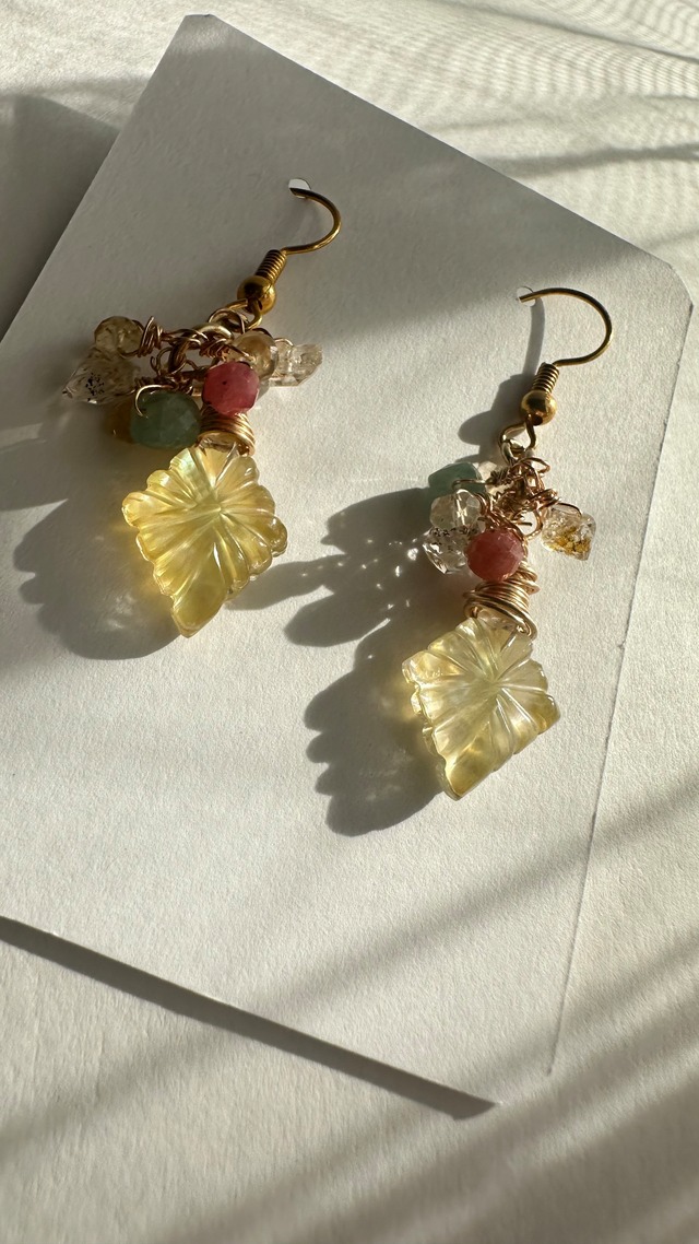 春の陽射しと共に、華やかな気分を引き立てる「イエローシェル×クリスタルのカービングピアス/イヤリング ミモザ・春色」。ミモザのブーケを思わせる鮮やかなイエローシェルが、クリスタルで美しく挟まれたカービングモチーフとして耳元を華やかに演出します。さらに、UVライトで発光するハーキマーダイヤモンドや、珍しいグリーンカイヤナイト、可愛らしい濃ピンクのインカローズが絶妙に組み合わさり、一層の輝きを加えています。 このピアス/イヤリングは、シンプルながらも存在感があり、デイリースタイルから特別な日の装いまで幅広く活躍します。春の優しい雰囲気を纏ったアイテムで、あなたの美しさを引き立てる一品です。 石言葉は、健康、長寿、富、円満 など 海の中で育つ貝殻には、海のパワーが宿っていると考えられています。 シェルを身につけることで大らかな母なる海の波動を受け取ることができ、ヒーリング効果があると言われています。 その癒しの効果により自然と気持ちが明るくなり、物事をポジティブに捉えられるようになるので、ネガティブな感情に悩まされている時に身につけるとよいでしょう。 怒りやストレスなどで気分が落ち着かない時には、平常心を取り戻し本来の自分らしさを保つ力を与えてくれるとも。 また、クリエイティブな力を高めてくれるとも言われていることから、企画職やデザイナーなど想像力が必要な職業の人におすすめ。 グリーンカイヤナイトは自己の確率を促し、自分がどうありたいのかの答えをもたらしてくれるといわれています。 そのため周りの意見に流されることなく、自分にとって 最良の道に進むサポート をしてくれるでしょう。 ほかには、グリーンカイヤナイトが身につける人の心身のバランスを保って、洞察力や直感力を高め、豊かな表現ができるよう導いてくれるといわれています。 グリーンカイヤナイトは、人生を見つめ直して 再スタート したい人におすすめのパワーストーンです。 グリーンカイヤナイトを身につけることで、精神力を強めて内側に凛とした強さを持ち、新しい世界へ飛び立つことができるでしょう。 ロードクロサイトの石言葉は「新しい愛の到来」「秘めた情熱」「バラ色の人生」「愛の炎」などがあります。 人同士を結び付ける効果もあるため、「引き寄せの石」とも呼ばれているとか。 また、心を開き、情熱的になる効果があることから、「恋愛の石」としても人気があります。 ロードクロサイトは7月の誕生石です。 誕生日別では7月19日、12月28日の誕生日石とされています。 また、おとめ座の守護石でもあります。 ロードクロサイトは風水では「真実の幸福」の意味があります。 ■ カラー/サイズ/バリエーション カラー:イエロー(シェル)、クリスタル、その他天然石 サイズ:約5cm ■ 素材/製造国 素材:イエローシェル、クリスタル、ハーキマーダイヤモンド、グリーンカイヤナイト、インカローズ、14KGF(ワイヤー・ピアス部分) ※イヤリングやアレルギー対応、サージカルステンレスなど変更可能 製造国:日本 ■ お手入れ/取り扱い注意事項 ・天然石を使用しているため、一つ一つの色合いや模様に個体差があります。 ・水に浸したり、高温多湿の場所での保管は避けてください。 ■ 発送・注文に関する情報や注意事項 ・ご注文確定後、通常3〜5営業日以内に発送いたします。 ・この商品は数量限定のため、在庫がなくなり次第終了となります。 ■ その他の情報や注意事項 ・ご使用後は、柔らかい布で軽く拭いてから保管してください。 ・耳に異常を感じた場合はすぐに使用を中止してください。 商品についてのお問い合わせは、ショップのお問い合わせからお気軽にどうぞ。春を感じる美しいジュエリーをあなたのコレクションに加えて、特別な時間を楽しんでください。