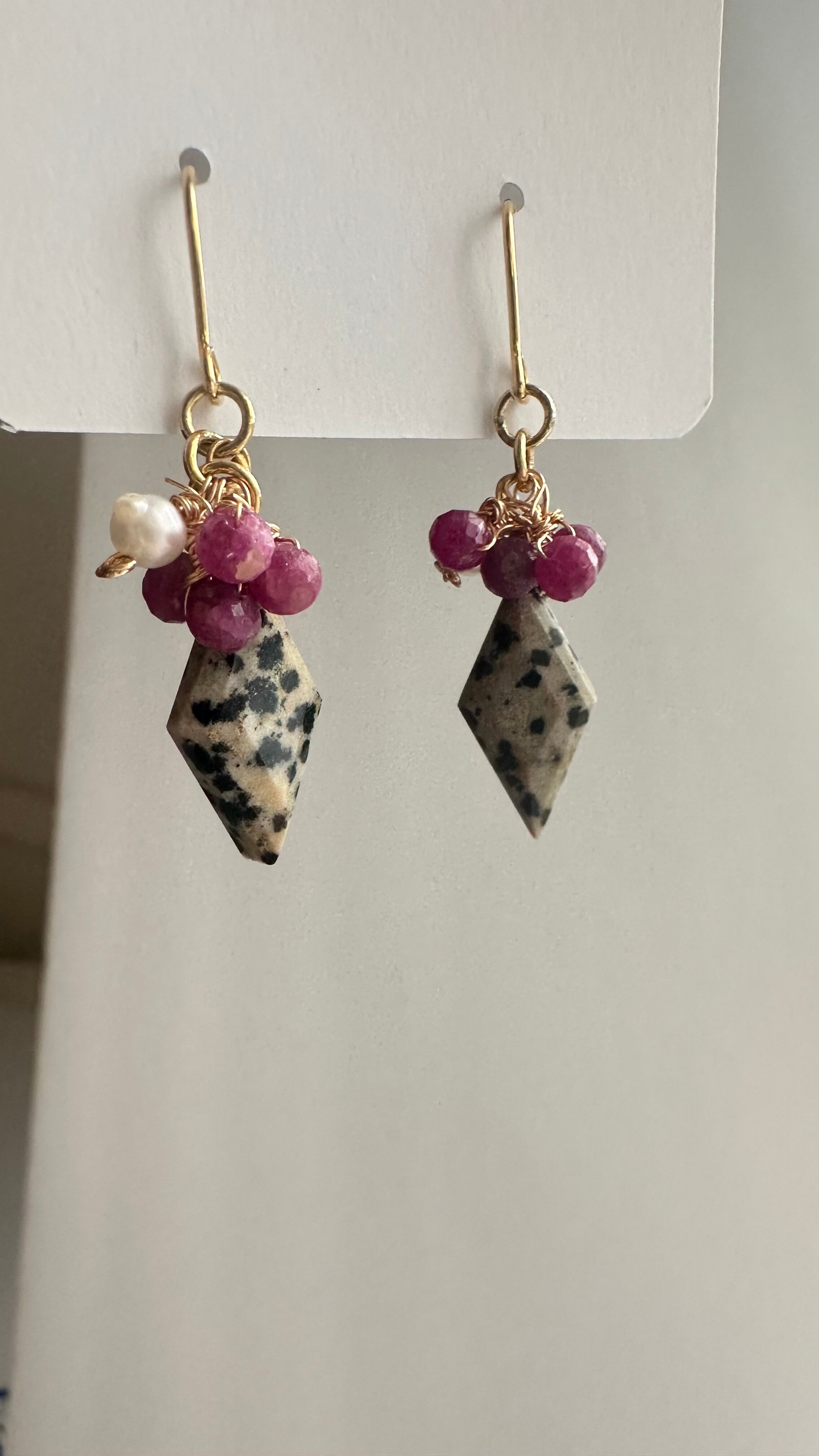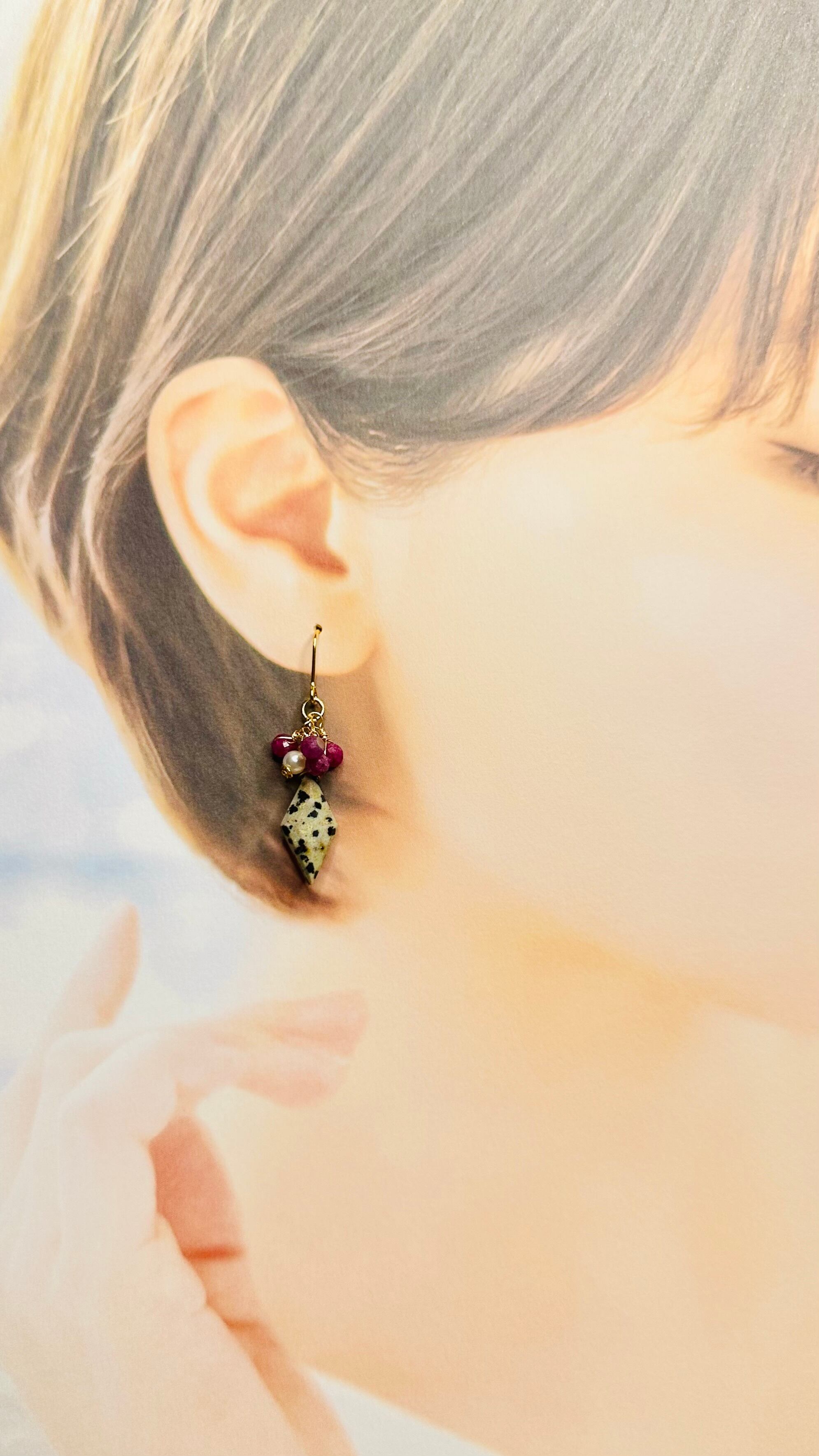 ピアス/イヤリング ダルメシアンジャスパーとルビーのピアス